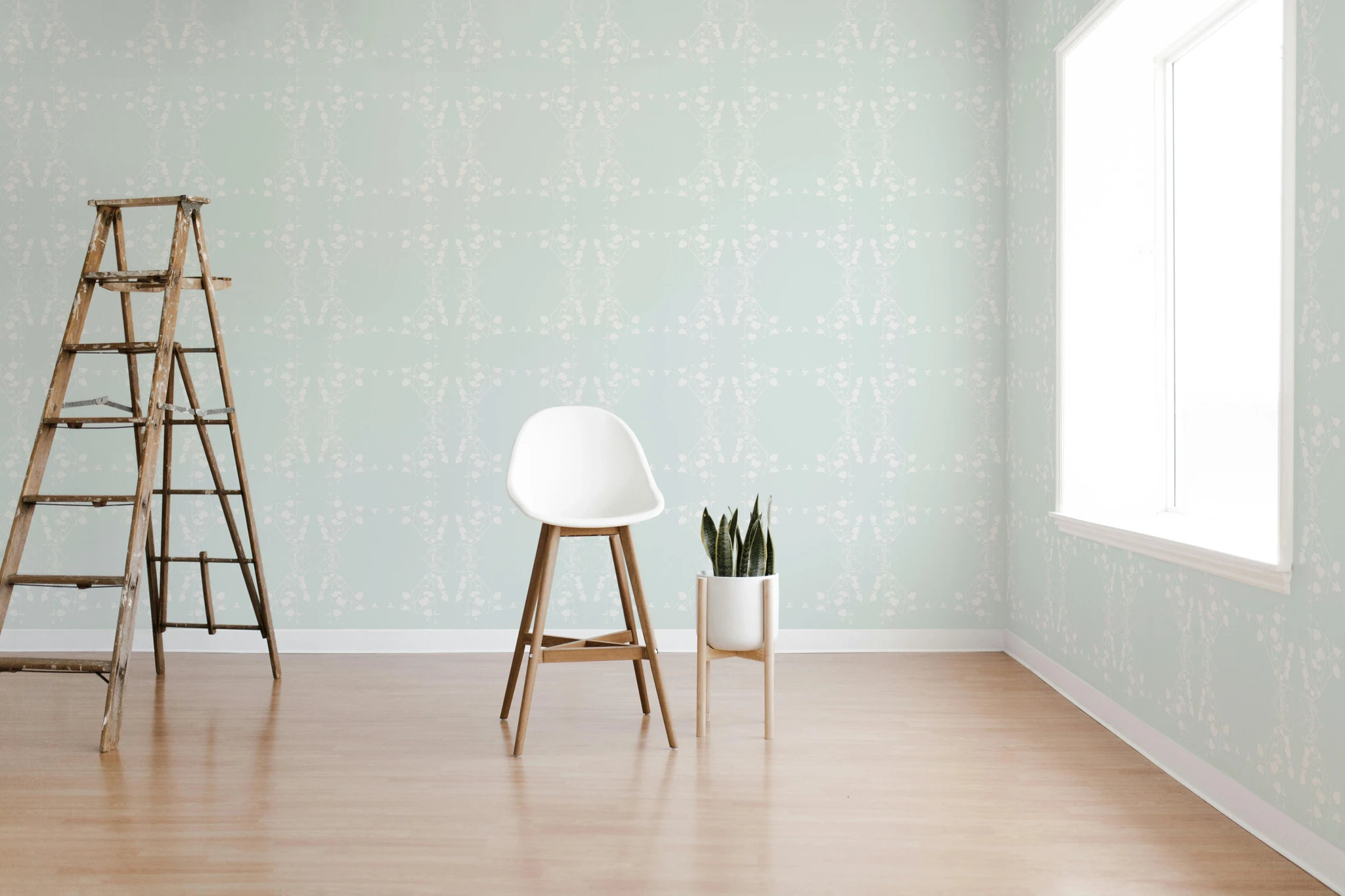 Wallpaper Violets depicts violet plants (Viola riviniana) from a herbarium sheet. The plants were collected from an Estonian woodland, dried and pressed, and edited into the pattern visible on the wallpaper. This subtle print of white plant motifs and light blue background will brighten up the room while giving it some additional dimension.